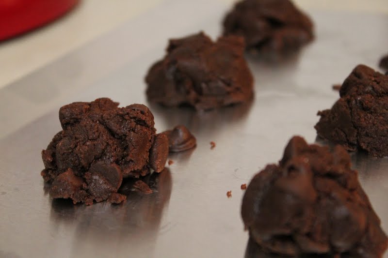Mix together & drop by teaspoonfuls on ungreased cookie sheet. Bake 8 minutes at 350 F